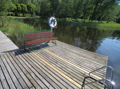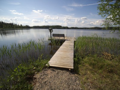 Ranta on hiekkapohjainen ja vesi kirkasta, sopii myös lapsille. Laiturin päästä löytyy syvempää vettä.